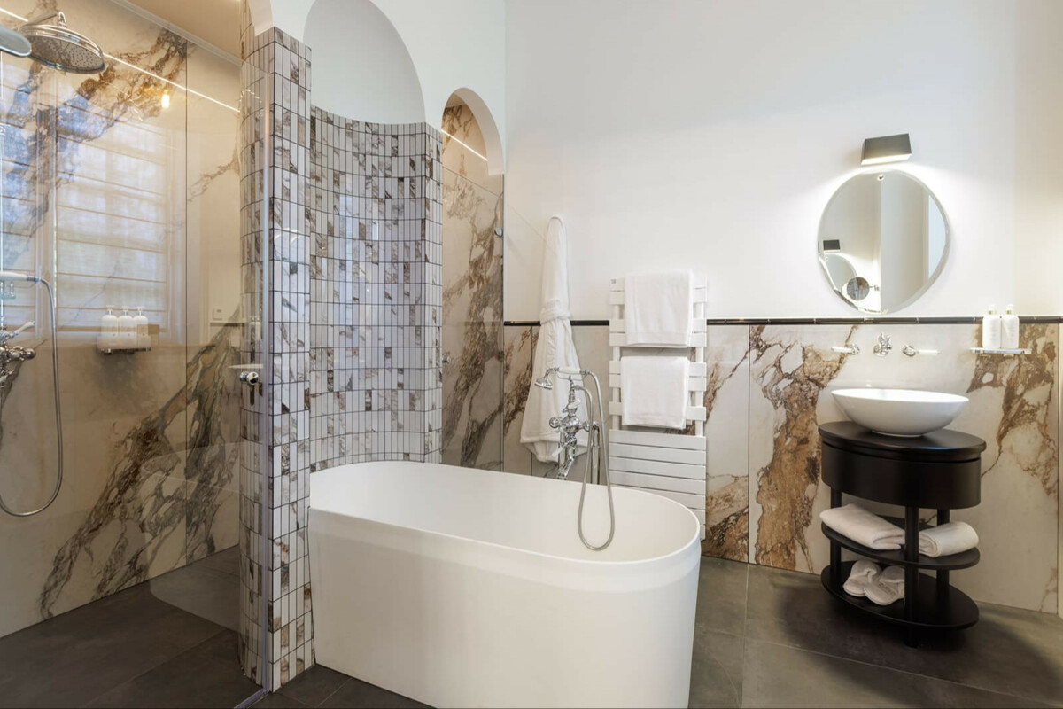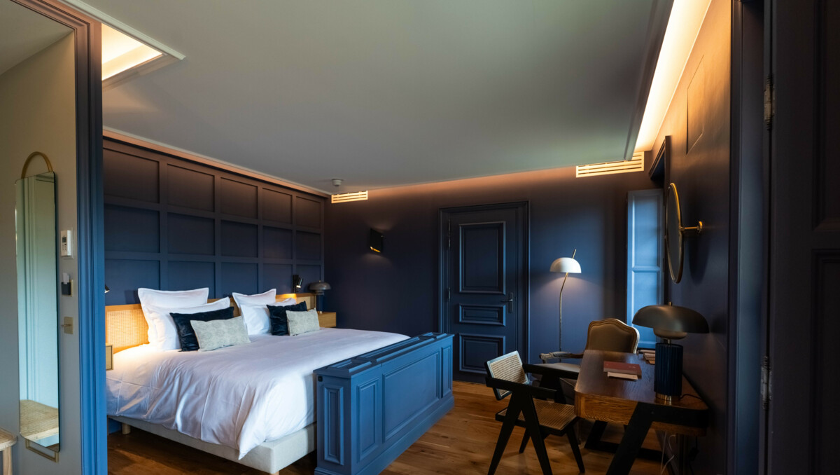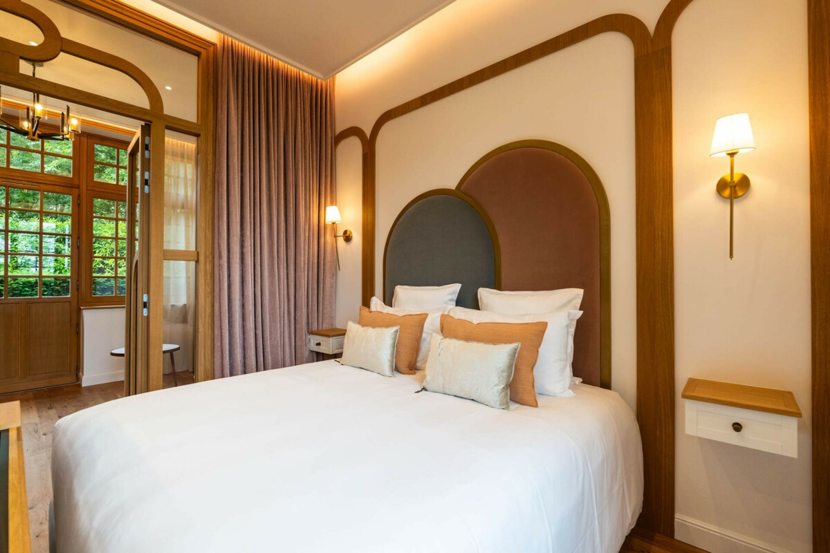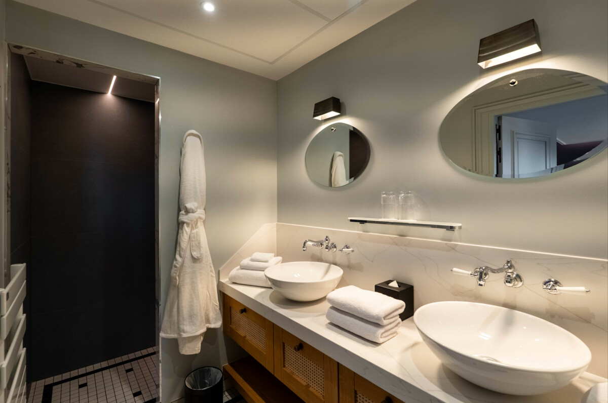 Située dans les anciennes Ecuries, la Suite Parc vous invite à vous ressourcer dans un cadre paisible et verdoyant, avec une vue imprenable sur le parc verdoyant. Élégamment aménagée et dotée de prestations haut de gamme, cette suite vous promet un séjour luxueux et relaxant.
