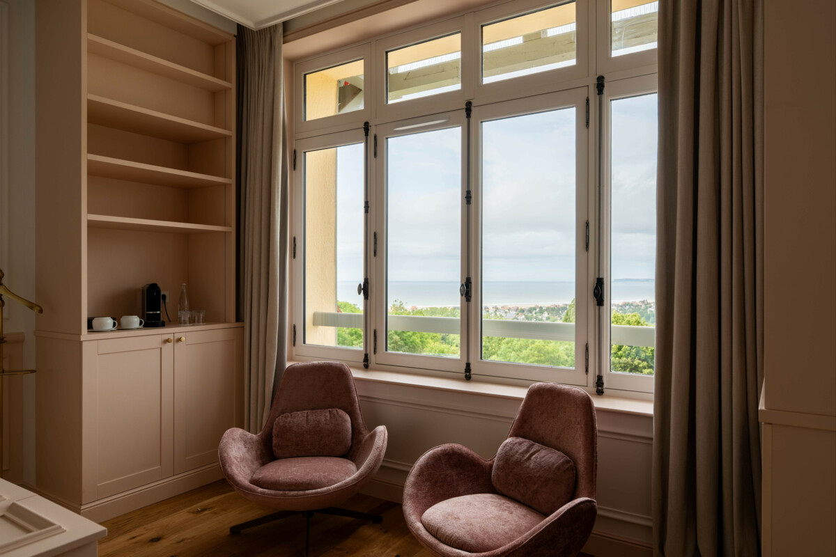 Au premier étage du Manoir, la Suite Vue Mer vous offre une expérience unique, avec une vue imprenable sur la Côte Fleurie et la mer scintillante. Détendez-vous dans cet espace luxueux et élégant, où le murmure des vagues devient la mélodie de votre séjour.