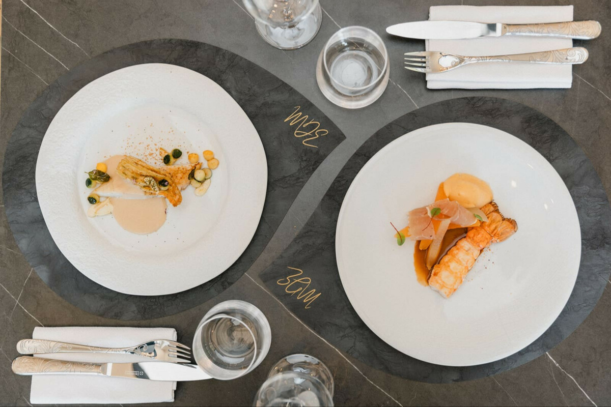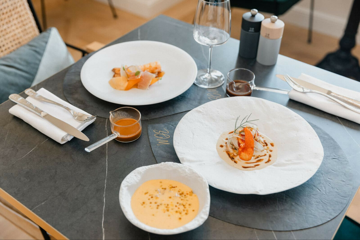 Le Romanesque se distingue par son ambiance feutrée et son service attentionné, où chaque convive est accueilli avec soin et attention. Ici, l'élégance des assiettes rivalise avec celle du décor dont les fenêtres s'ouvrent sur la mer.